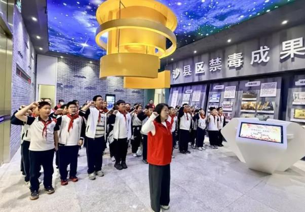 参观尾声,同学们在禁毒宣誓墙前庄严举起右拳,用稚嫩而坚定的声音许下“远离毒品,健康生活”的承诺。