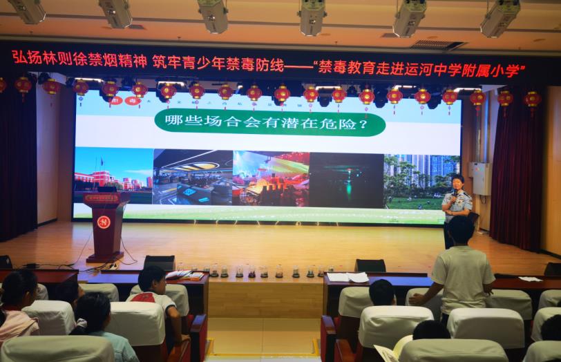 今年是民族英雄、禁毒先驱林则徐诞辰240周年,为大力弘扬林则徐禁烟和爱国主义精神,深入开展青少年禁毒宣传教育。10月9日,临河里街道平安建设办联合北京市天堂河女子强制隔离戒毒所“七色花”宣讲团,针对青少年好奇心强、辨识能力弱等特点,在运河中学附属小学为六年级部分班级学生开展了一场别开生面的禁毒宣讲活动。