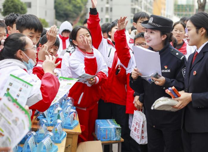 近日,贵州省黔西市人民检察院干警联合黔西市公安局民警来到黔西市第二中学,开展禁毒宣传进校园。