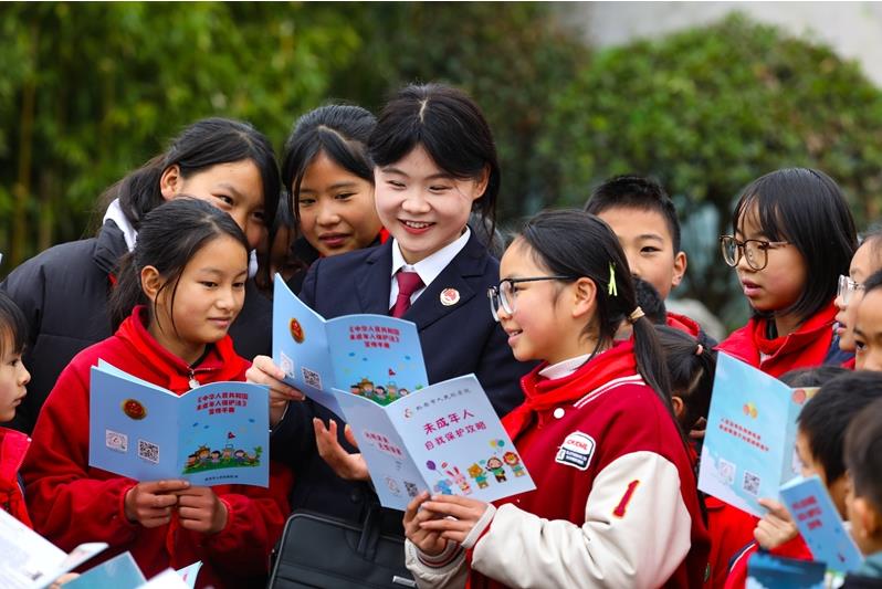 活动中,检察干警向同学们讲解了《中华人民共和国未成年人保护法》中新增的网络保护条款,包括网络保护理念、网络信息管理、个人网络信息保护以及网络沉迷防治等内容,并全面介绍了相关规范。干警还以案释法,讲解如何防范网络电信诈骗、拒绝校园欺凌等知识,引导学生文明安全上网,提高网络安全防护与识诈防骗能力;同时发放《健康人生 绿色无毒》禁毒宣传资料,结合资料内容讲解相关法律法规,帮助同学们认识毒品的种类、形状、颜色及其危害,深刻理解“珍惜生命、远离毒品,健康人生、绿色无毒”的意义。此外,干警还向同学们普及了未成年人心理健康知识及《家庭教育促进法》等相关法律法规,不断增强学生的自我防范和自我保护意识,引导其远离违法犯罪。