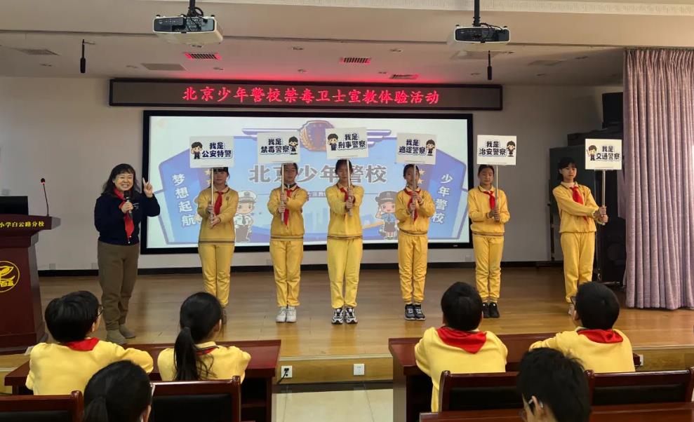 1月22日,在北京团市委、北京市少工委指导下,北京青少年服务中心联合中国人民公安大学,携手西城区白云路小学搭建家校社协同育人共联体,开展北京少年警校“禁毒卫士”宣教体验活动。活动打破班级与年级界限,覆盖3-6年级学生,辐射在校学生500余人,以“弘扬警察精神,远离毒品侵害”为核心,将警察知识普及、平安建设理念与平安校园创建深度融合,通过沉浸式课程与互动体验,为青少年筑牢安全防护网。