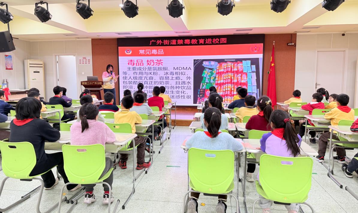 春风送暖,万物复苏,又到一年开学季。为提升青少年识毒、拒毒、防毒意识,持续加强法治宣传教育力度,增强青少年法治意识和自我保护能力。广外街道禁毒工作站在北京第二实验小学广外分校开展以“童心不“毒”行,健康伴我行”为主题的禁毒宣传进校园活动。