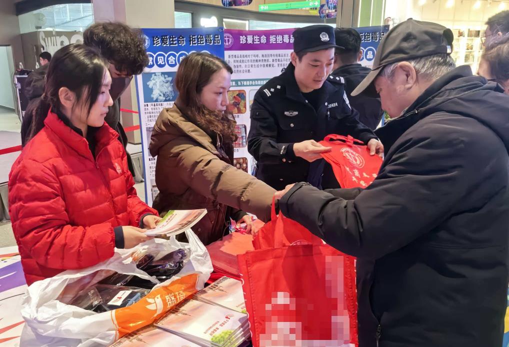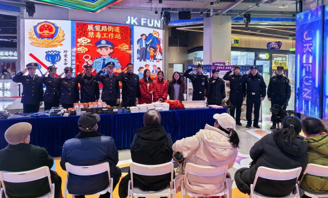 在第六个人民警察节来临之计,展览路禁毒工作站联合辖区展览路街道、展览路派出所、动物园派出所在JK Fun商城开展110警察节禁毒宣传活动。