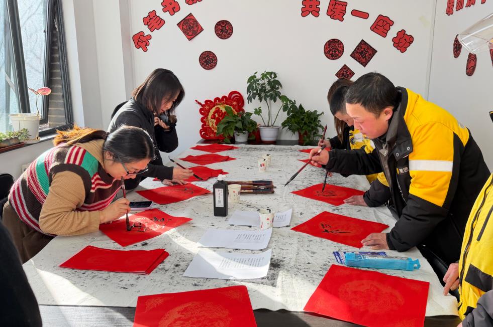 特色区域之二写福送福区则人气爆棚,红纸铺展间,外卖小哥们挥毫泼墨,一个个苍劲有力的“福”字跃然纸上,更有融入禁毒理念的创意春联备受追捧,这些兼具警示意义与美好祝愿的笔墨作。