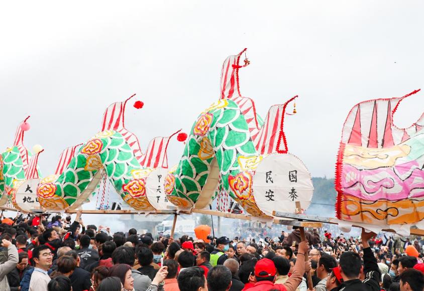 起龙仪式上,故宫博物院第六任院长、中国文物学会专家委员会主任单霁翔,福建省文化和旅游厅党组成员、副厅长傅柒生,共同为巨龙点睛,朱砂落定,祥龙金睛骤然焕彩,焰火直冲天空,绚烂夺目。随着长者一声铿锵有力的“起龙!”,上千名青壮年合力抬龙,肩扛木架、脚步齐整,千米巨龙应声昂首摆尾、俯身腾挪,巡游的大幕正式拉开。在锣鼓队、灯箱队的引领下,长龙蜿蜒前行,龙身之上,党风廉政、综治平安、移风易俗、禁毒反诈等主题宣传内容融入其间,让千年民俗与时代新风交相辉映。
