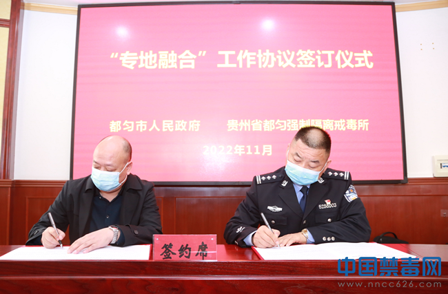 图为都匀市“专地融合”工作协议签订现场。中国禁毒网发