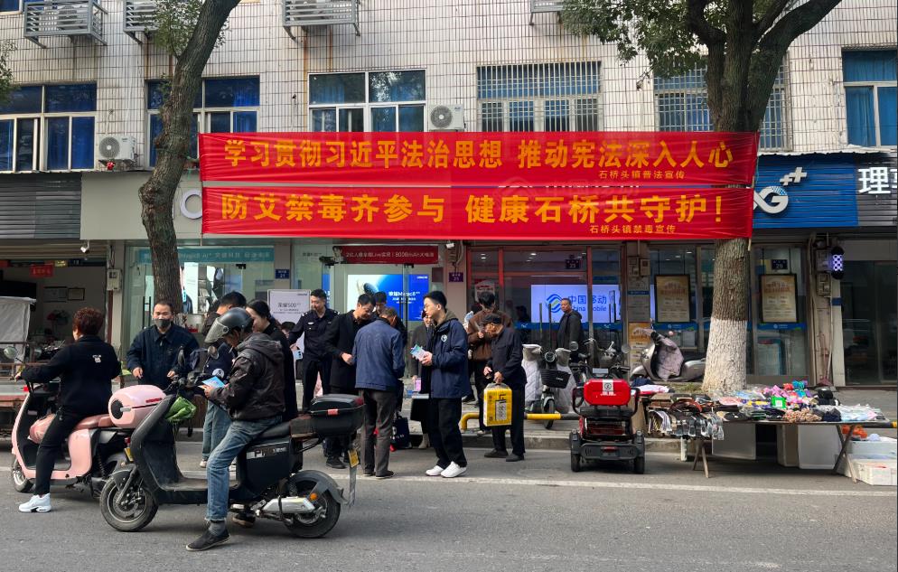 恰逢石桥头镇赶集日,为让禁毒防艾知识精准触达更多群众,石桥头镇禁毒办联合司法所抢抓这一有利时机,在镇主要街道设置宣传摊位,开展了一场接地气、入人心的禁毒防艾宣传活动。