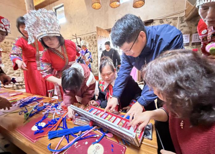 活动以寄雨茶室的绒花制作展开序幕,一朵朵五颜六色的绒花在妇女的手中慢慢展现。禁毒社工穿插在制作间隙,向大家发放“笑气”预防宣传手册,展示仿真毒品样本,介绍毒品的种类和危害。