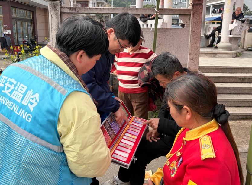 戏台上唱的是传统经典,戏台下讲的是拒毒防毒。禁毒志愿者们穿插在人群中,向观戏群众和小摊贩们发放禁毒宣传手册,宣传毒品的种类和危害,并结合手册内容,向群众重点讲解了“笑气”等成瘾性物质的严重危害。同时,通过展示仿真毒品样本,让村民特别是青少年直观认识到新型毒品的伪装性(如“奶茶”“跳跳糖”等),提高辨别能力,有效提升了大家的识毒、防毒能力。