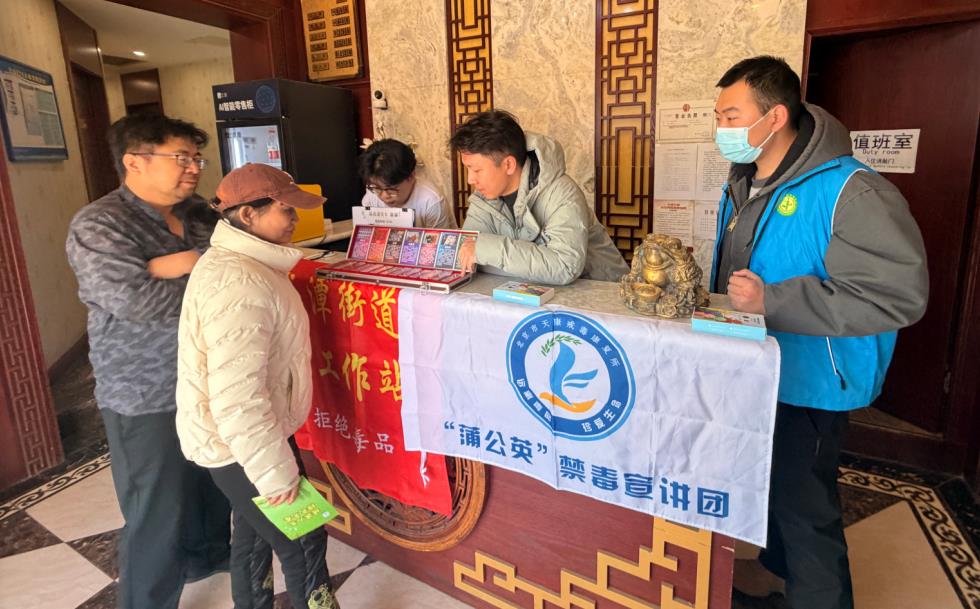 为进一步加强辖区酒店宾馆等场所的禁毒宣传力度,营造绿色无毒的良好氛围,1月12日,东城区龙潭街道联合北京市天康戒毒康复所对辖区内酒店开展禁毒宣传活动。