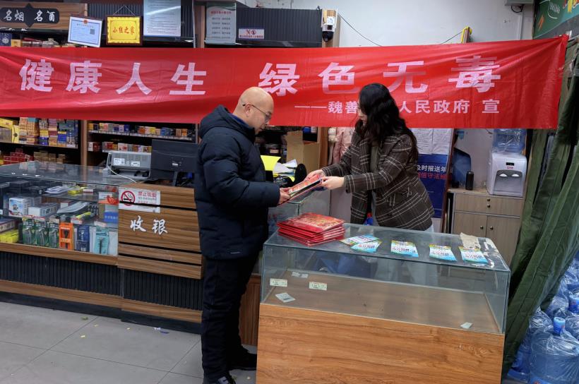 为进一步扩大禁毒宣传覆盖面,提高禁毒影响力,切实增强辖区居民群众的识毒、拒毒意识和防范能力,2026年2月3日,大兴区魏善庄镇禁毒办联合平安建设办公室(综治)、魏善庄派出所等部门,在辖区商超门店门口开展以“健康人生 绿色无毒”为主题的禁毒宣传活动。