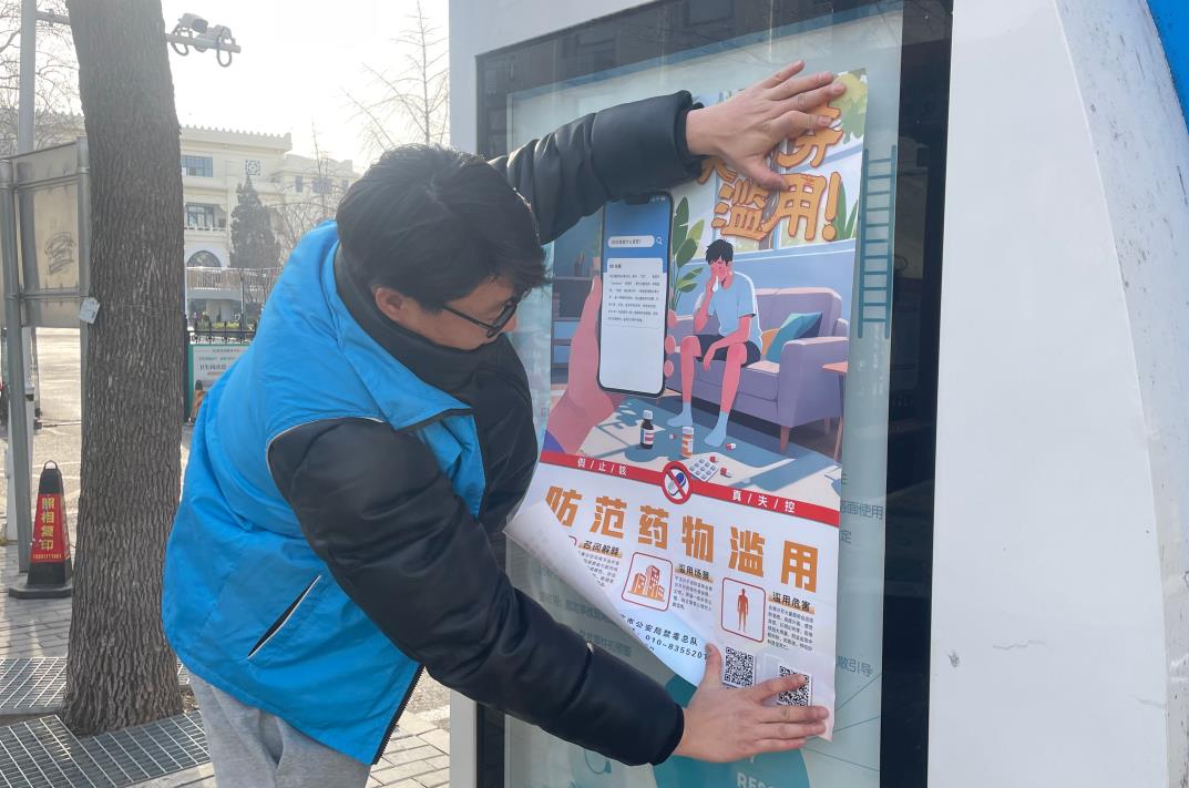 2月13日,东城区体育馆路街道禁毒社工在法南社区开展禁毒宣传活动。禁毒社工店向过往群众发放禁毒宣传资料,讲解宣传册上的毒品知识和毒品危害,并在社区宣传栏张贴海报。引导辖区居民树立拒绝药物滥用、拥抱健康生活的理念,增强群众识毒、防毒、拒毒的意识和能力,营造浓厚的禁毒氛围,共建共享无毒社区。