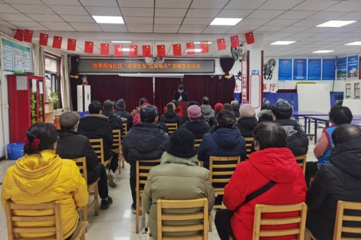 为普及禁毒知识,提升居民识毒、防毒、拒毒意识,营造平安和谐的社区环境,近日,鲁谷街道在依翠园南居委会开展禁毒宣传活动。