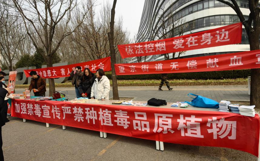 毒品对个人、家庭乃至整个社会都会造成极大的危害,为进一步加大禁毒宣传教育力度,提高街道辖区群众识毒、防毒、拒毒意识。2026年3月17日,望京街道平安办联合房管局、计卫办利用望京SOHO广场人员密集场所开展禁种铲毒宣传活动。