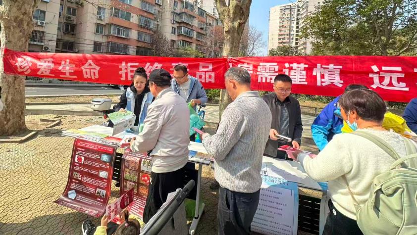 正值清明祭扫期间,为进一步提升居民识毒、防毒、拒毒的意识与能力,2026年4月2日上午10:00潘家园街道于松榆西里社区普法广场以“珍爱生命,拒绝毒品”为主题的禁毒宣传活动。参加此次活动的有潘家园街道办事处副主任朱广新、综治事务副科长李勇、松榆西里社区等,发放折页100余份,香皂、漱口杯、垃圾袋、停车牌等宣传品共150余份。