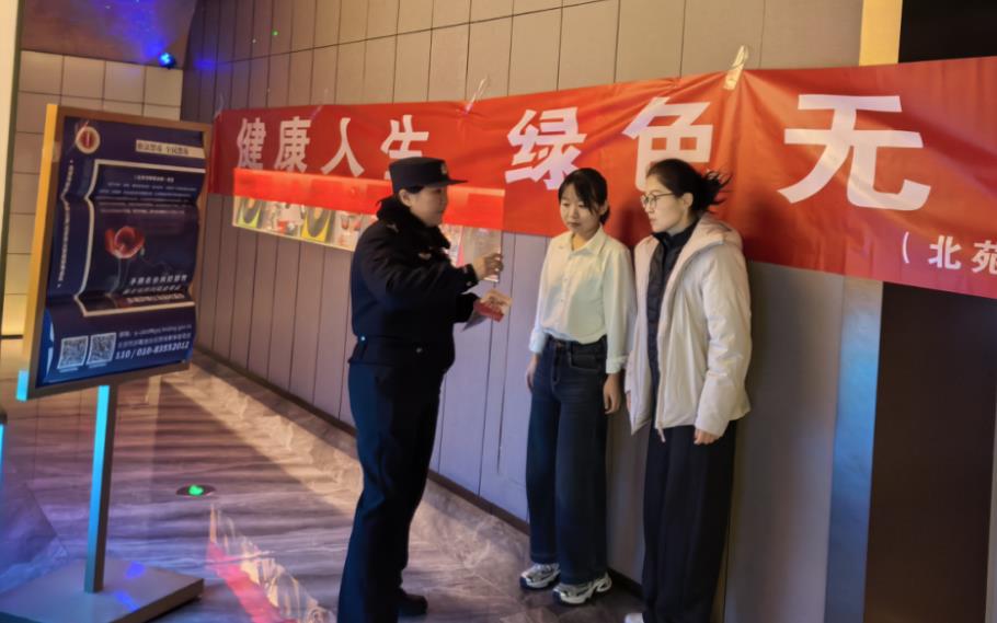 为营造安全、健康的节日娱乐氛围,切实加强春节期间娱乐场所禁毒宣传教育,提高从业人员及消费者的禁毒意识,2026年2月13日,北苑街道平安建设办公室联合北苑派出所,组织社区志愿者共同深入辖区动刻KTV开展“健康人生 绿色无毒”节前禁毒宣传活动。