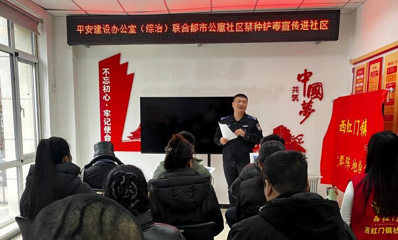 为进一步筑牢社区禁毒防线,普及禁种铲毒知识,提高居民识毒、防毒、拒毒意识,2月27日,西红门镇禁毒办走进都市公寓社区开展禁种铲毒宣传教育进社区活动,社区民警现场宣讲,工作人员同步发放禁毒宣传手册,切实将禁毒理念传递到每一户家庭。