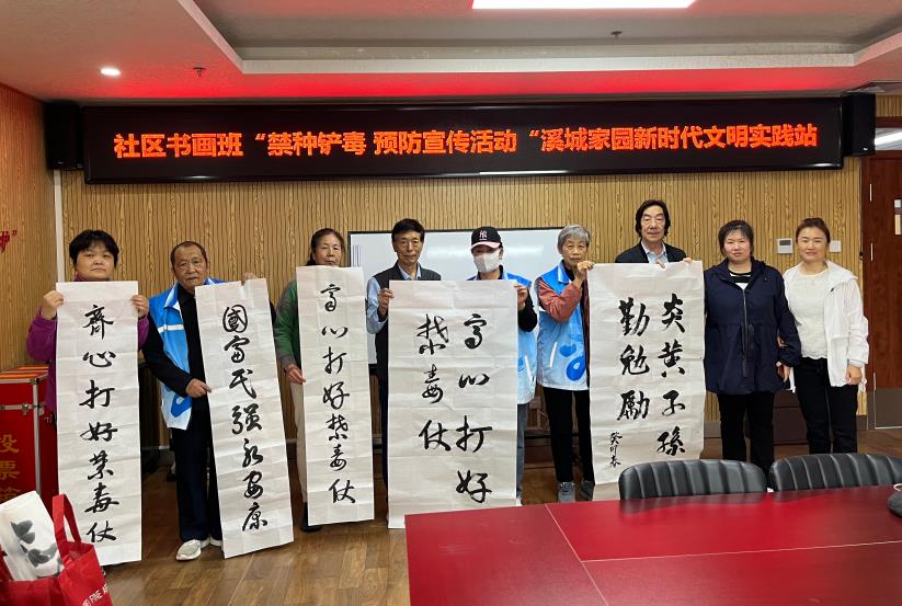 为进一步深化禁毒宣传教育工作,筑牢全民禁毒思想防线,营造“健康人生、绿色无毒”的社区氛围,2026年3月12日,昌平区天通苑南街道溪城家园携手小区书法爱好者共同开展了“禁种铲毒预防宣传活动”。此次活动将传统文化与禁毒工作深度融合,有力推动禁毒理念深入人心。