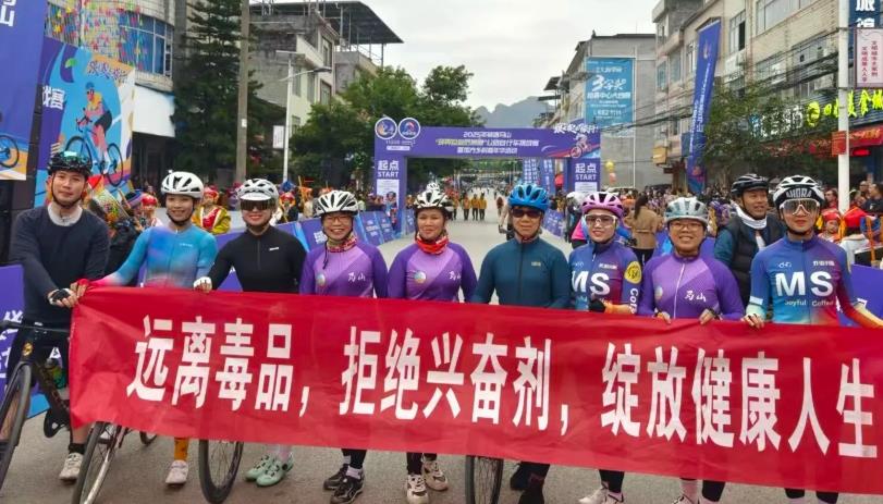 活动当日,来自全国各地的367名自行车运动爱好者齐聚马山,在秀美的喀斯特地貌赛道上展开了一场速度与毅力的比拼,共同呈现了一场“禁毒+体育+旅游”的多元融合的宣传实践。