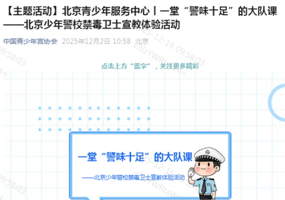 法治进行时抖音号:北京少年警校禁毒卫士宣教体验活动青少年反诈教育