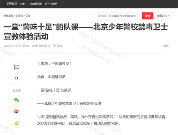 网易:一堂“警味十足”的队课——北京少年警校禁毒卫士宣教体验活动