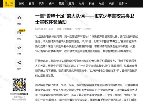 搜狐:一堂“警味十足”的大队课——北京少年警校禁毒卫士宣教体验活动