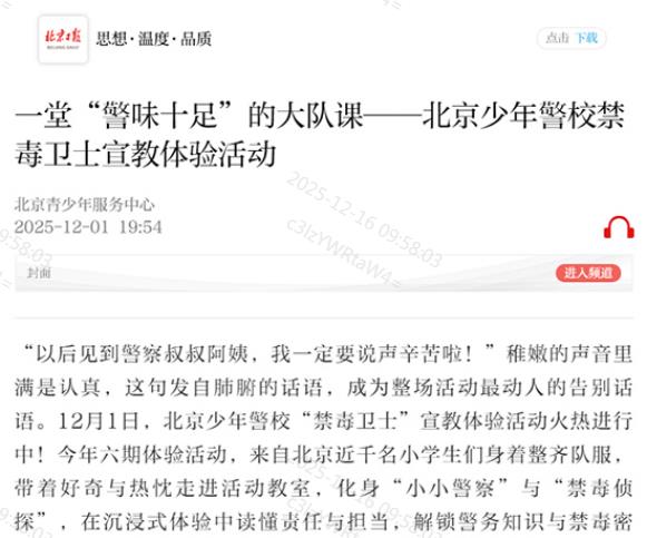 北京青年:北京少年警校“禁毒卫士”宣教体验活动举办