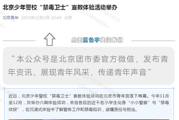 法制进行时:北京少年警校“禁毒卫士”宣教体验活动启幕